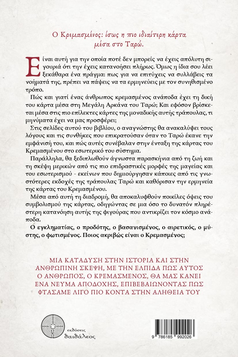Στις σελίδες αυτού του βιβλίου, ο αναγνώστης θα ανακαλύψει τους λόγους και τις συνθήκες που επικρατούσαν όταν το Ταρώ έκανε την εμφάνισή του, και πώς αυτές συνέβαλαν στην ένταξη της κάρτας του Κρεμασμένου στο εσωτερικό του σύστημα.