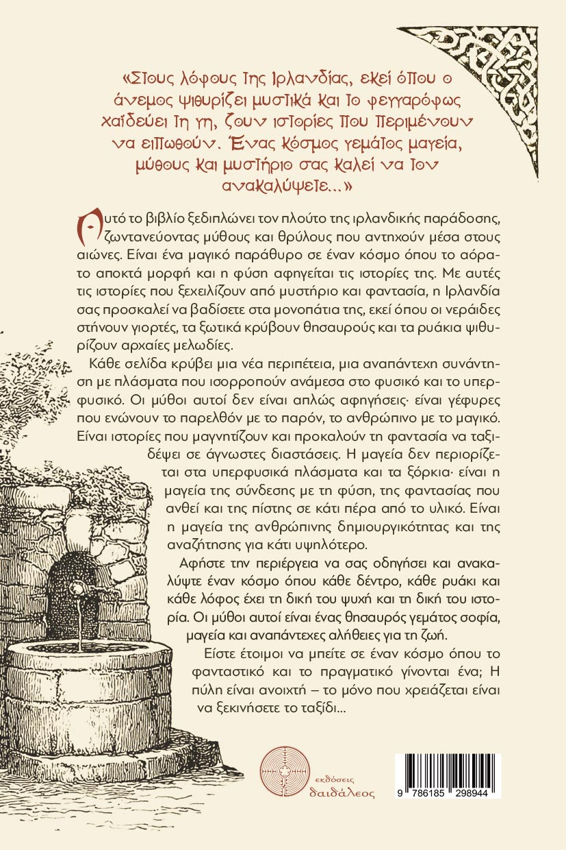 Αυτό το βιβλίο ξεδιπλώνει τον πλούτο της ιρλανδικής παράδοσης, ζωντανεύοντας μύθους και θρύλους που αντηχούν μέσα στους αιώνες. Είναι ένα μαγικό παράθυρο σε έναν κόσμο όπου το αόρατο αποκτά μορφή και η φύση αφηγείται τις ιστορίες της. Με αυτές τις ιστορίες που ξεχειλίζουν από μυστήριο και φαντασία, η Ιρλανδία σας προσκαλεί να βαδίσετε στα μονοπάτια της, εκεί όπου οι νεράιδες στήνουν γιορτές, τα ξωτικά κρύβουν θησαυρούς και τα ρυάκια ψιθυρίζουν αρχαίες μελωδίες.